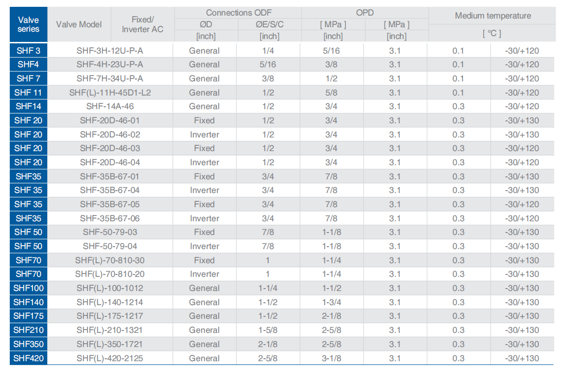 SHF series four-way reversing valves are applicable forheat pump systems such as central, unitary and room airconditioners to realize switching