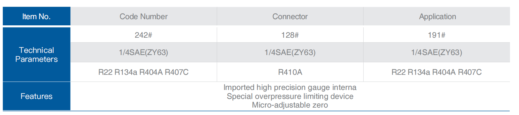 The pressure gauge is a vibration-proof pressure gauge with oil filed inside for refrigeration use only.