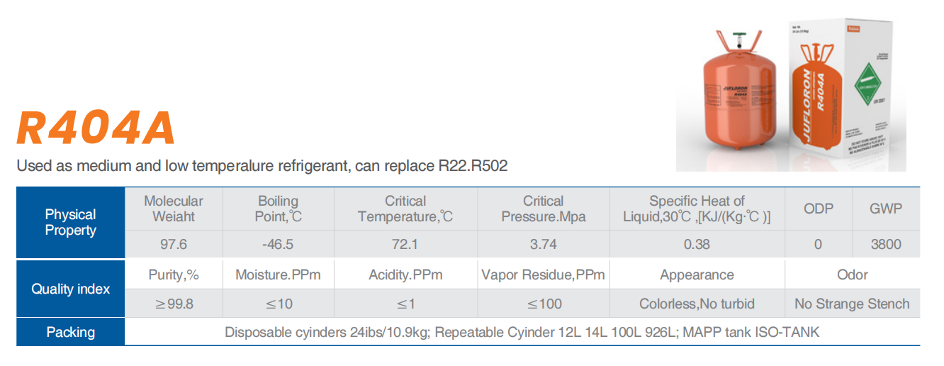 • R404A Used as medium and low temperalure refrigerant, can replace R22.R502
