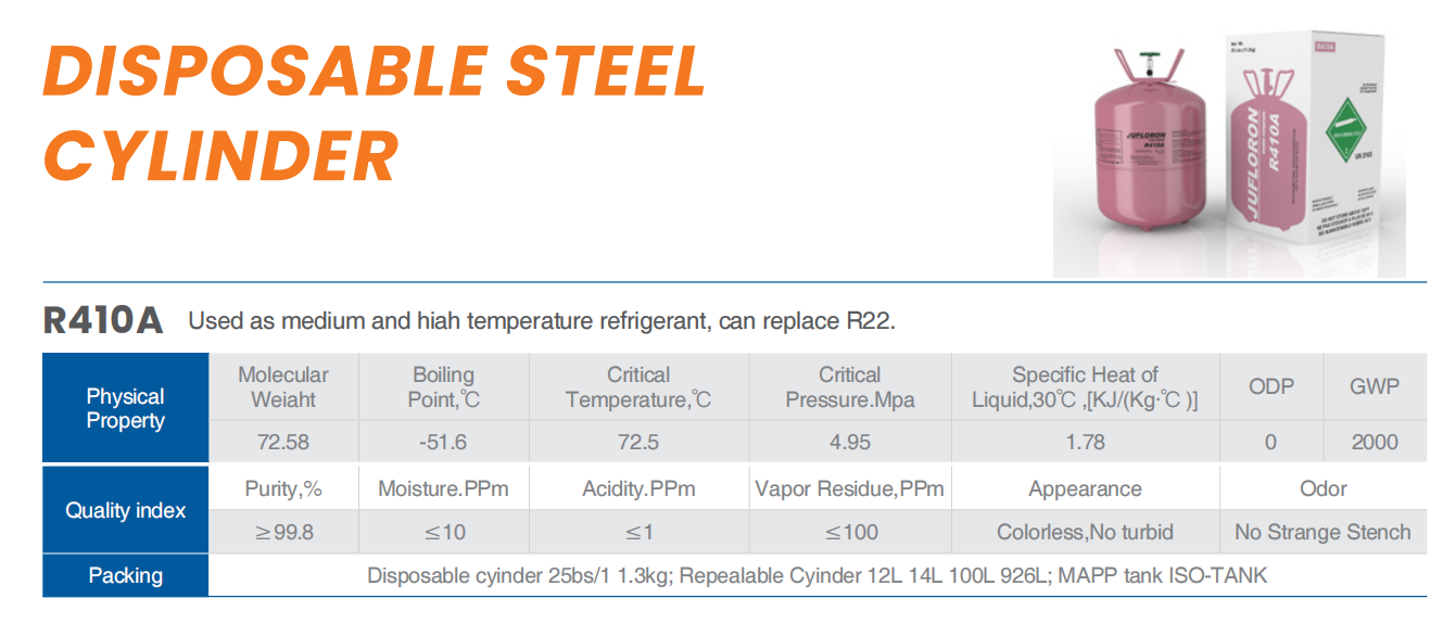 • R410A Used as medium and hiah temperature refrigerant, can replace R22.