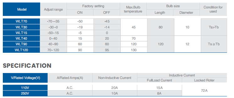 WLT series temperature control has a single pole double throw(SPDT)